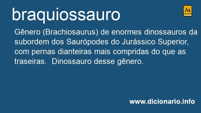 substantivo masculino [Paleontologia] Gênero (Brachiosaurus) de enormes dinossauros da subordem dos Saurópodes do Jurássico Superior, com pernas dianteiras mais compridas do que as traseiras. Dinossauro desse gênero.