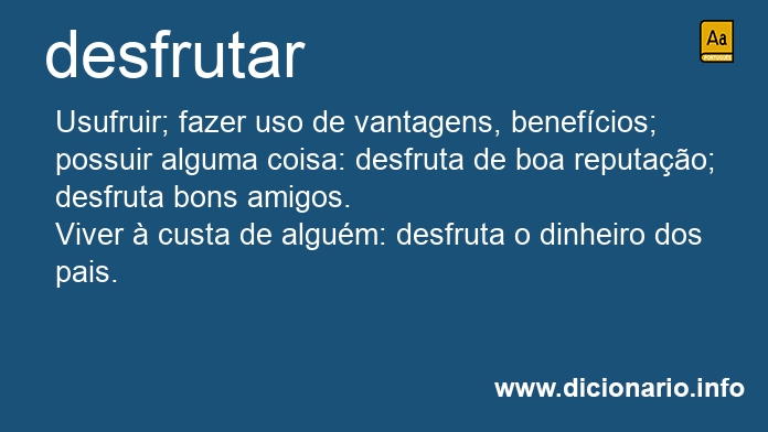 Usufruir; fazer uso de vantagens, benefícios; possuir alguma coisa: desfruta de boa reputação; desfruta bons amigos.