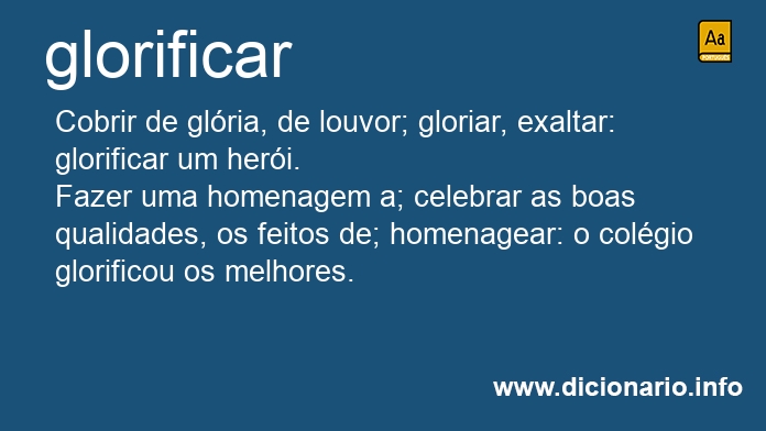 Cobrir de glória, de louvor; gloriar, exaltar: glorificar um herói.
