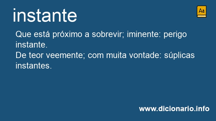 Instante é sinônimo de: momento, iminente, urgente, premente
