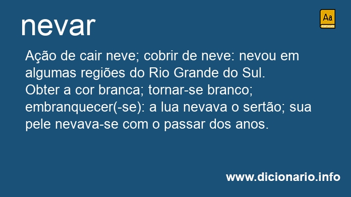 [Figurado] Obter a cor branca; tornar-se branco; embranquecer(-se): a lua nevava o sertão; sua pele nevava-se com o passar dos anos.