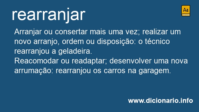 Etimologia (origem da palavra rearranjar). Re + arranjar.