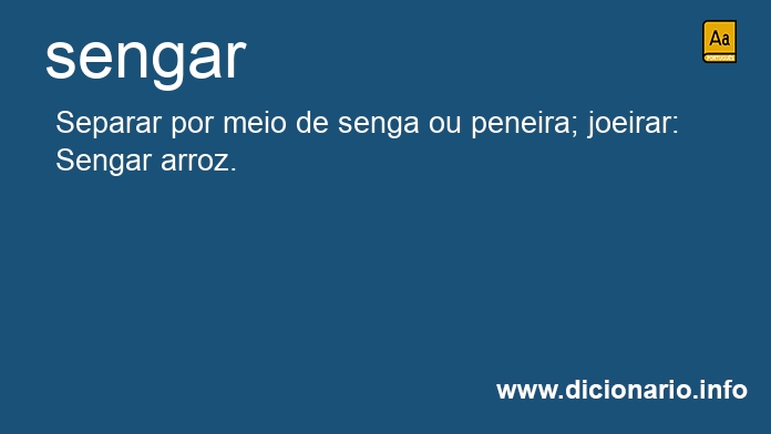 Separar por meio de senga ou peneira; joeirar: Sengar arroz.