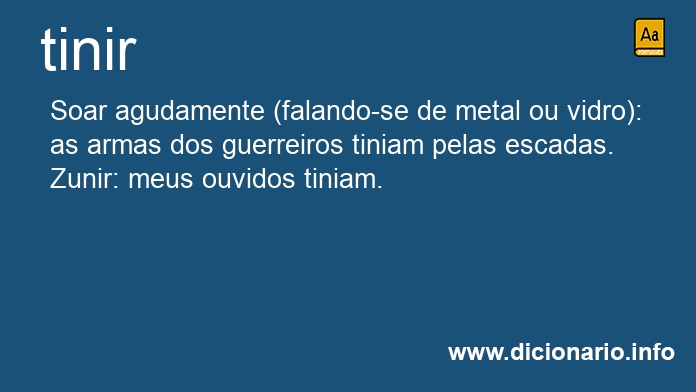 Soar agudamente (falando-se de metal ou vidro): as armas dos guerreiros tiniam pelas escadas.