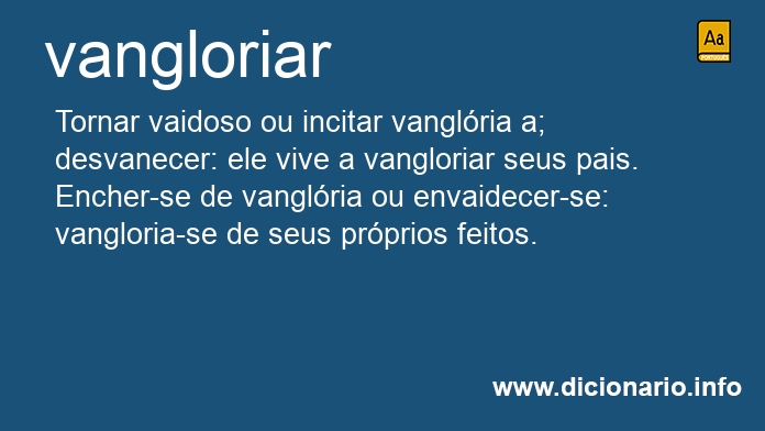 Etimologia (origem da palavra vangloriar). Vangloria + ar.