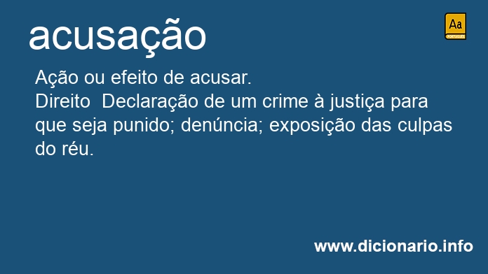 Acusação é sinônimo de: arguição, criminação, delação, denunciação, denúncia, querela