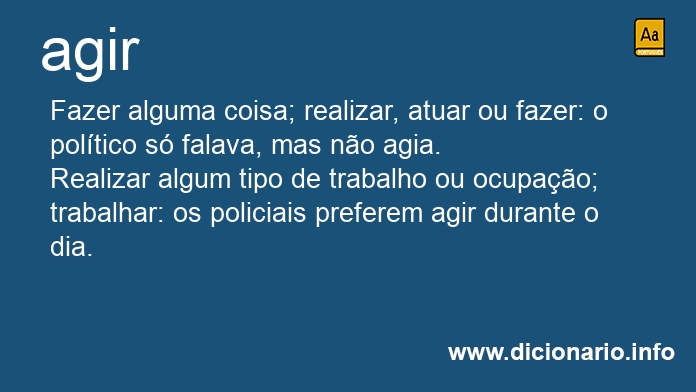 Fazer alguma coisa; realizar, atuar ou fazer: o político só falava, mas não agia.