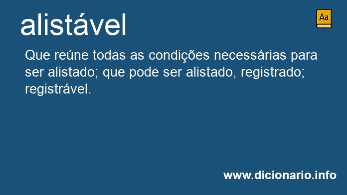 adjetivo Que reúne todas as condições necessárias para ser alistado; que pode ser alistado, registrado; registrável.
