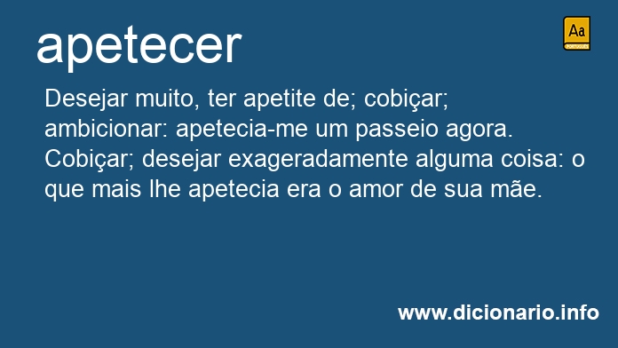 Cobiçar; desejar exageradamente alguma coisa: o que mais lhe apetecia era o amor de sua mãe.