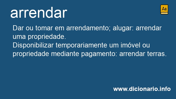 Dar ou tomar em arrendamento; alugar: arrendar uma propriedade.