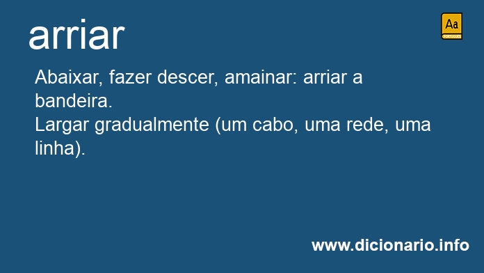 Abaixar, fazer descer, amainar: arriar a bandeira.