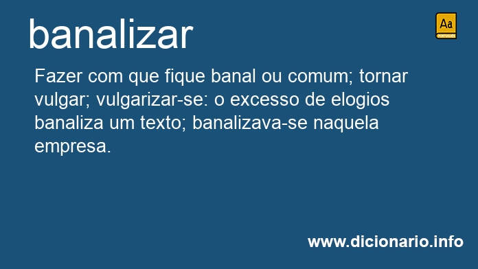 Etimologia (origem da palavra banalizar). Banal + izar.