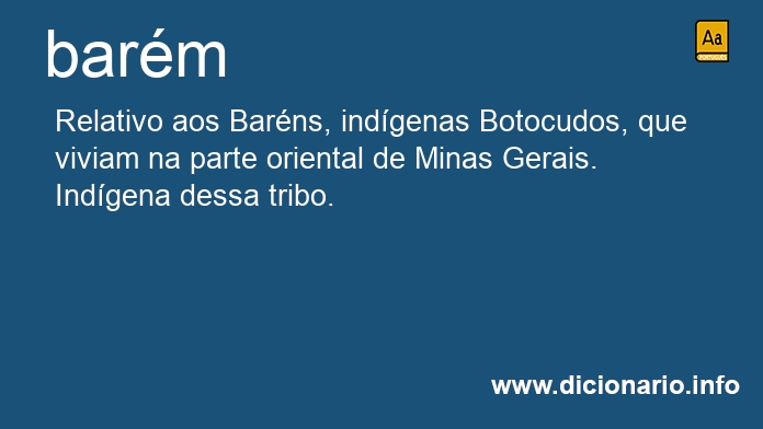 adjetivo masculino e feminino [Etnologia] Relativo aos Baréns, indígenas Botocudos, que viviam na parte oriental de Minas Gerais.