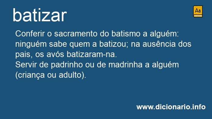 [Religião] Conferir o sacramento do batismo a alguém: ninguém sabe quem a batizou; na ausência dos pais, os avós batizaram-na.