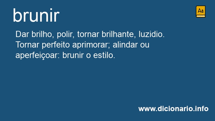 [Figurado] Tornar perfeito aprimorar; alindar ou aperfeiçoar: brunir o estilo.