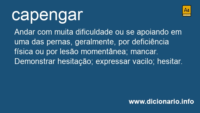Etimologia (origem da palavra capengar). Capenga + ar.
