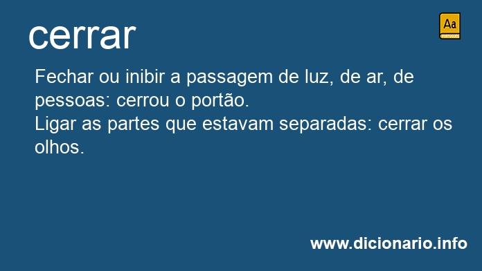 Cerrarei vem do verbo cerrar. O mesmo que: unificarei, cobrirei, concentrarei, conectarei, fecharei, vedarei, finalizarei, escurecerei, inibirei.