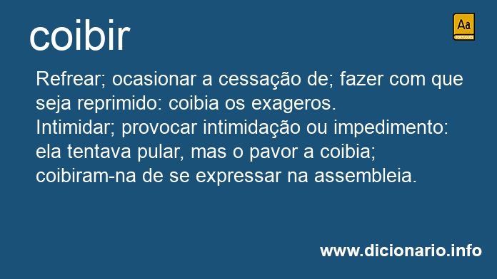 Intimidar; provocar intimidação ou impedimento: ela tentava pular, mas o pavor a coibia; coibiram-na de se expressar na assembleia.