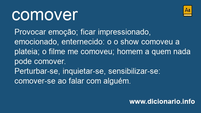 Provocar emoção; ficar impressionado, emocionado, enternecido: o o show comoveu a plateia; o filme me comoveu; homem a quem nada pode comover.