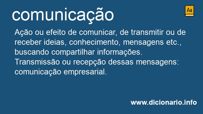 Ação ou efeito de comunicar, de transmitir ou de receber ideias, conhecimento, mensagens etc., buscando compartilhar informações.