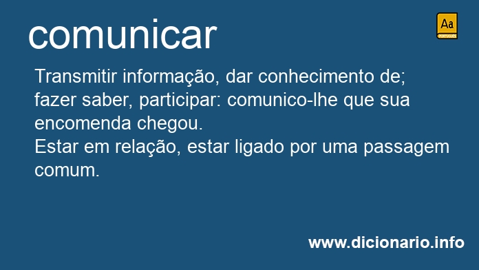 Transmitir informação, dar conhecimento de; fazer saber, participar: comunico-lhe que sua encomenda chegou.