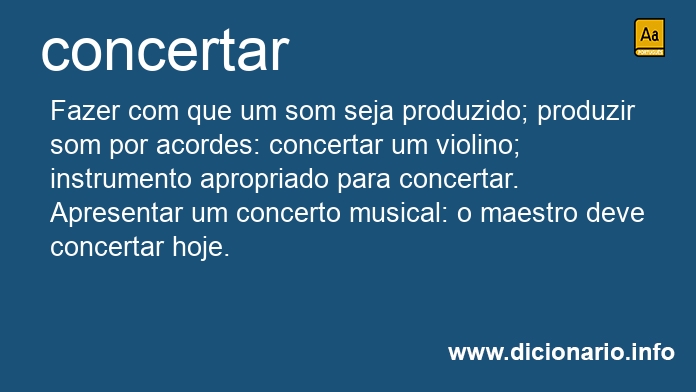 Fazer com que um som seja produzido; produzir som por acordes: concertar um violino; instrumento apropriado para concertar.