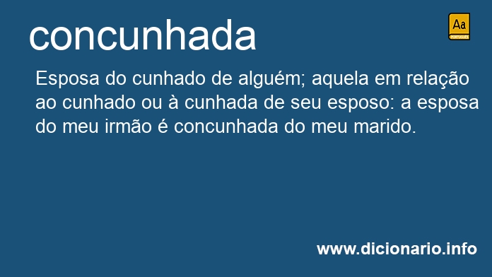 substantivo feminino Esposa do cunhado de alguém; aquela em relação ao cunhado ou à cunhada de seu esposo: a esposa do meu irmão é concunhada do meu marido.