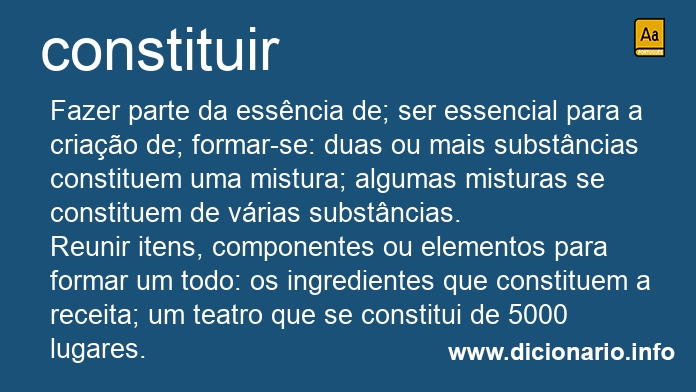 Fazer parte da essência de; ser essencial para a criação de; formar-se: duas ou mais substâncias constituem uma mistura; algumas misturas se constituem de várias substâncias.