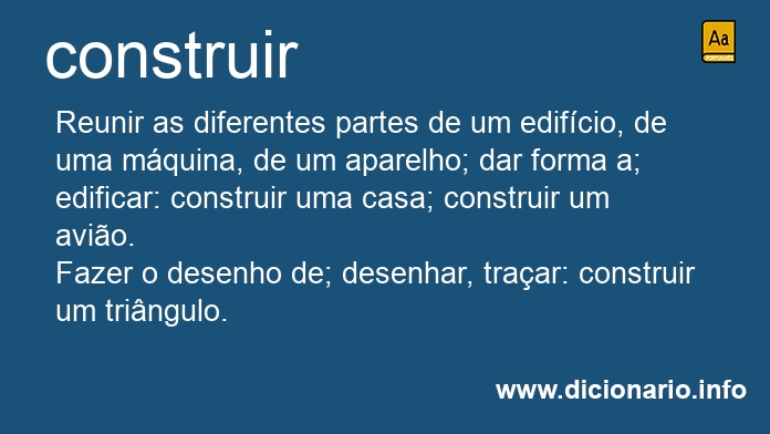 Reunir as diferentes partes de um edifício, de uma máquina, de um aparelho; dar forma a; edificar: construir uma casa; construir um avião.