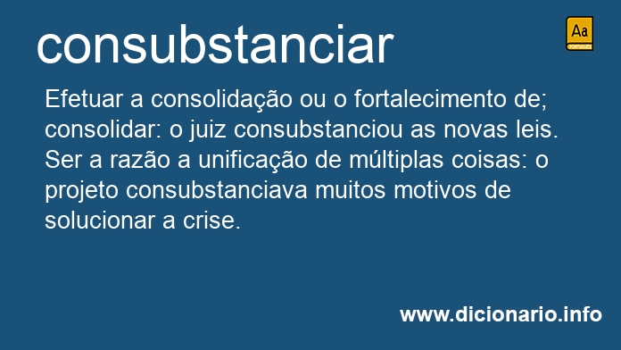 Efetuar a consolidação ou o fortalecimento de; consolidar: o juiz consubstanciou as novas leis.