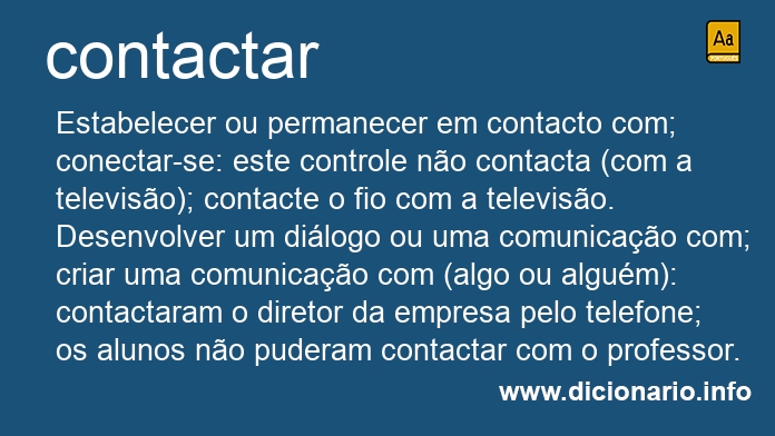[Portugal] Desenvolver um diálogo ou uma comunicação com; criar uma comunicação com (algo ou alguém): contactaram o diretor da empresa pelo telefone; os alunos não puderam contactar com o professor.