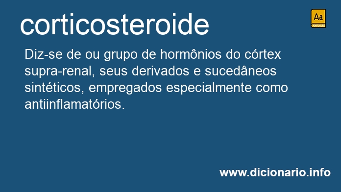 Diz-se de ou grupo de hormônios do córtex supra-renal, seus derivados e sucedâneos sintéticos, empregados especialmente como antiinflamatórios.