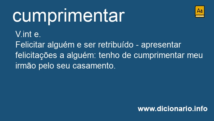 Felicitar alguém e ser retribuído - apresentar felicitações a alguém: tenho de cumprimentar meu irmão pelo seu casamento.