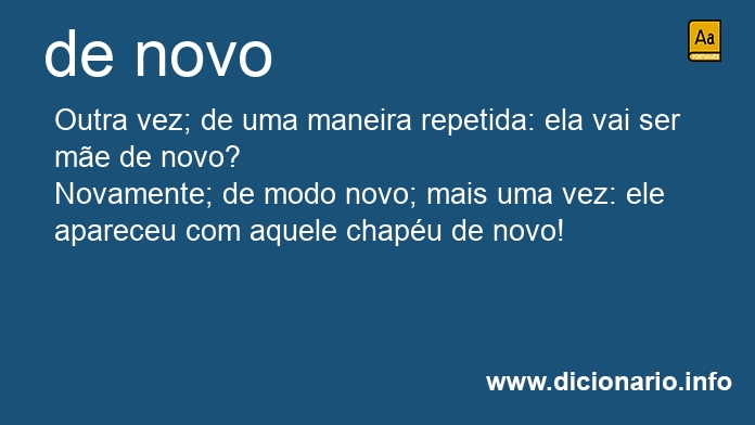 Novamente; de modo novo; mais uma vez: ele apareceu com aquele chapéu de novo!