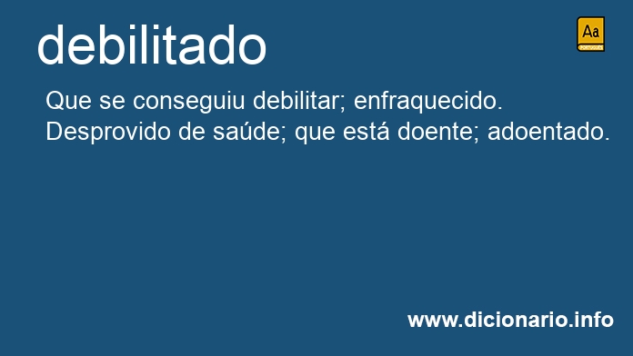 Debilitada é o feminino de debilitado. O mesmo que: abatida, langorosa, extenuada, enfraquecida, dessorada, depauperada, anémica, alquebrada, agastada.