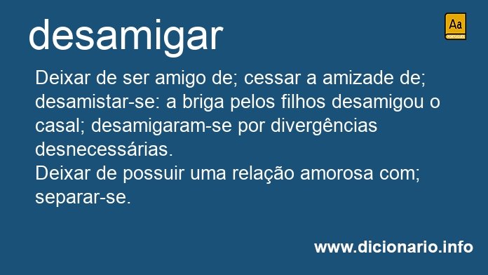 Etimologia (origem da palavra desamigar). Des + amigar.