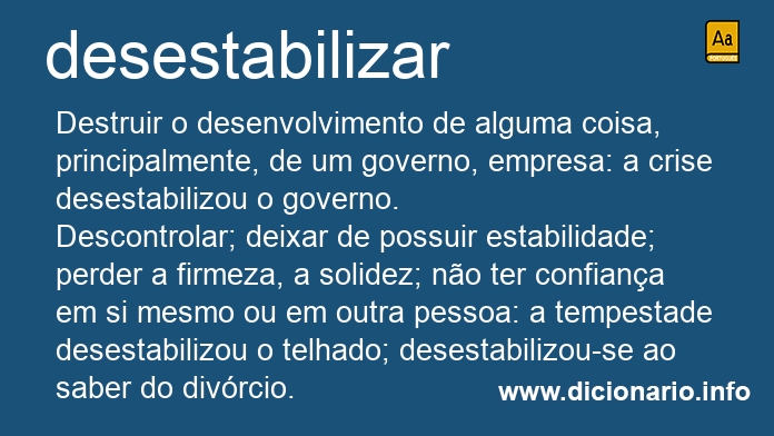 Etimologia (origem da palavra desestabilizar). Des + estabilizar.