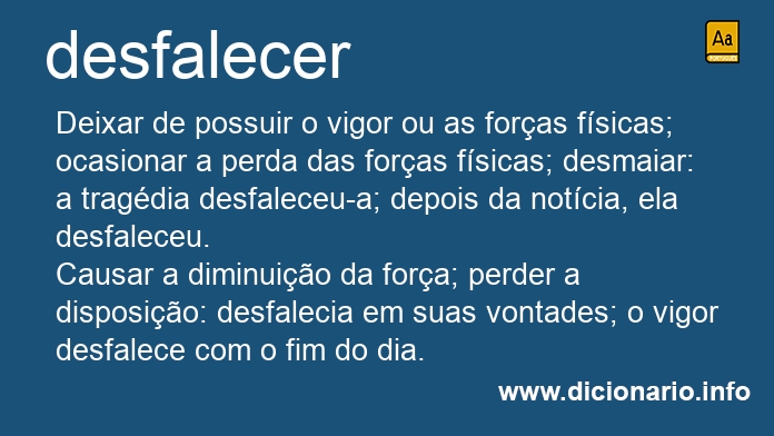 Deixar de possuir o vigor ou as forças físicas; ocasionar a perda das forças físicas; desmaiar: a tragédia desfaleceu-a; depois da notícia, ela desfaleceu.