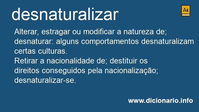 Retirar a nacionalidade de; destituir os direitos conseguidos pela nacionalização; desnaturalizar-se.