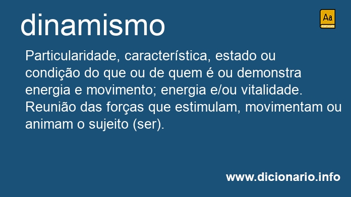 Tendência para o que é empreendedor; espírito energético; energia ou vitalidade: o dinamismo do novo gerente contagiou toda a empresa.