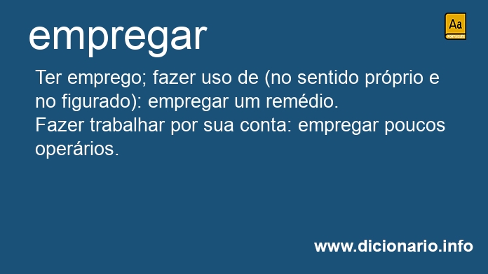 Ter emprego; fazer uso de (no sentido próprio e no figurado): empregar um remédio.