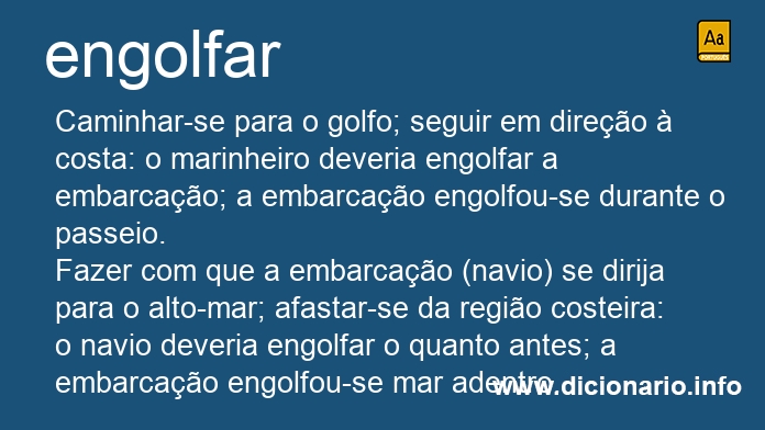 Caminhar-se para o golfo; seguir em direção à costa: o marinheiro deveria engolfar a embarcação; a embarcação engolfou-se durante o passeio.