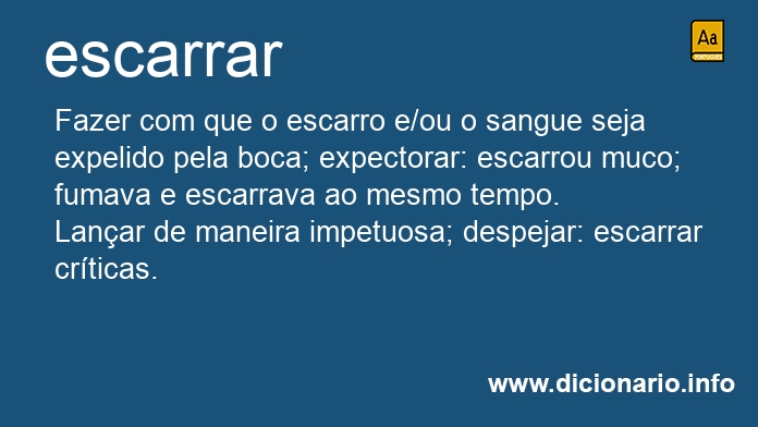 Fazer com que o escarro e/ou o sangue seja expelido pela boca; expectorar: escarrou muco; fumava e escarrava ao mesmo tempo.