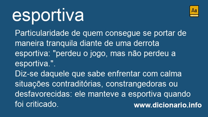 Particularidade de quem consegue se portar de maneira tranquila diante de uma derrota esportiva: "perdeu o jogo, mas não perdeu a esportiva.".
