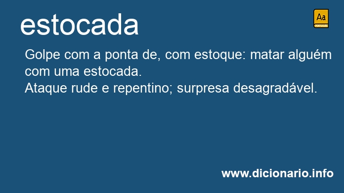 substantivo feminino Golpe com a ponta de, com estoque: matar alguém com uma estocada.