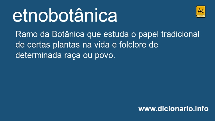 substantivo feminino Ramo da Botânica que estuda o papel tradicional de certas plantas na vida e folclore de determinada raça ou povo.