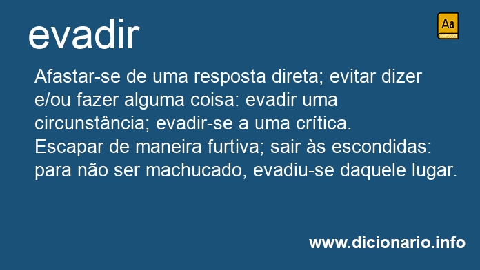 Afastar-se de uma resposta direta; evitar dizer e/ou fazer alguma coisa: evadir uma circunstância; evadir-se a uma crítica.