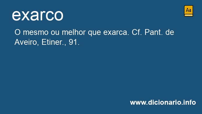 substantivo masculino [Antigo] O mesmo ou melhor que exarca. Cf. Pant. de Aveiro, Etiner., 91.