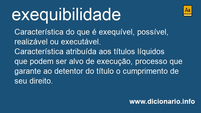 Etimologia (origem da palavra exequibilidade). Exequível - vel + bili + dade.