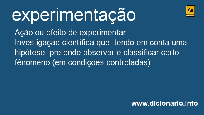 Etimologia (origem da palavra experimentação). Experimenta(r) + ção.